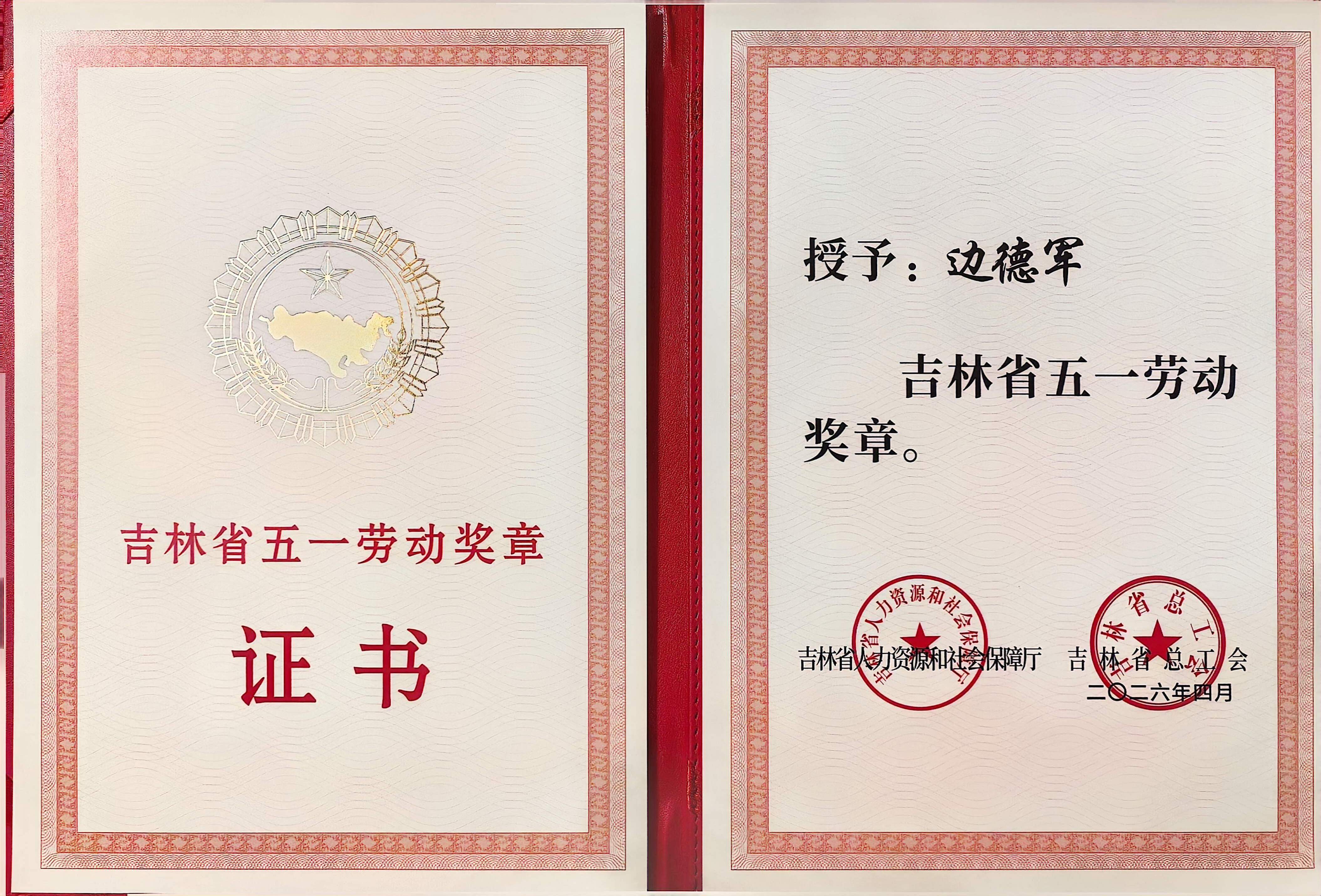 2026年4月28日,建功”十五五“,奋进新征程——2026年庆祝“五一”国际劳动节暨吉林省五一劳动奖和吉林省工人先锋号表彰发布活动在吉林省宾馆召开。实验室主任边德军教授荣获吉林省五一劳动奖章。